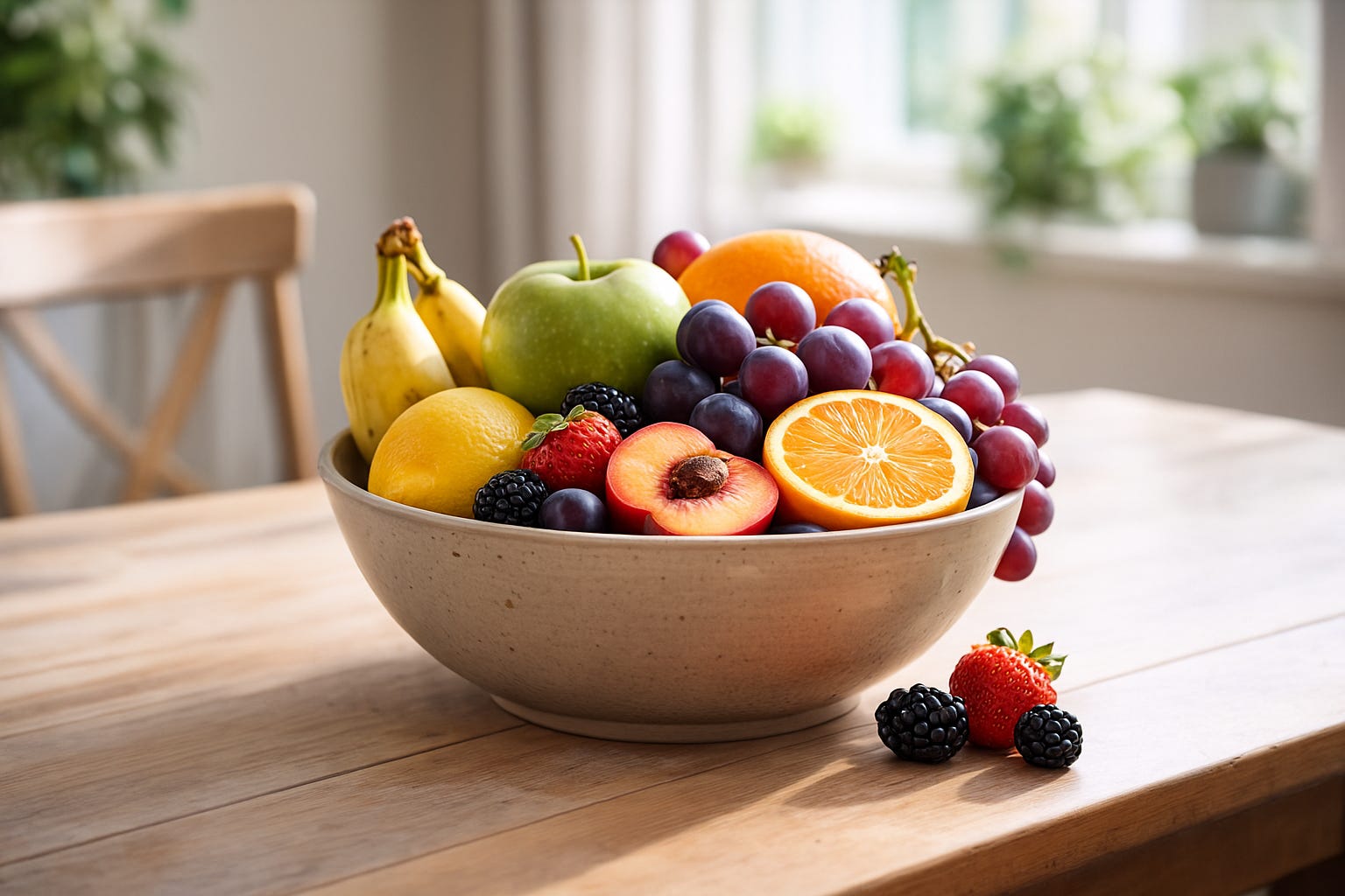 Représente un bol de fruits sur une tableRésultat ?