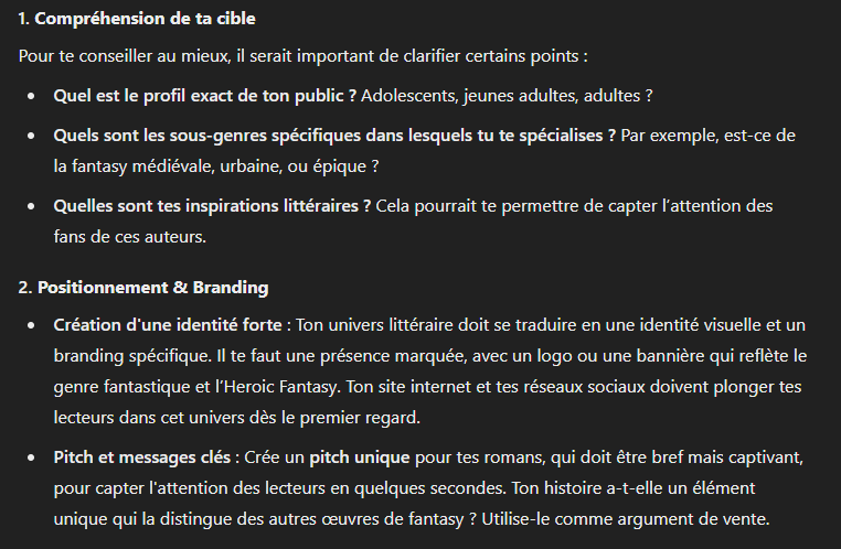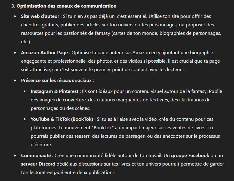 Alors, n’hésitez plus : que vous soyez auteur, entrepreneur ou créateur, laissez GPT vous guider dans votre stratégie de communication. Et si vous avez besoin d’aide pour rédiger vos prompts, je serai ravi de vous assister ! 💡