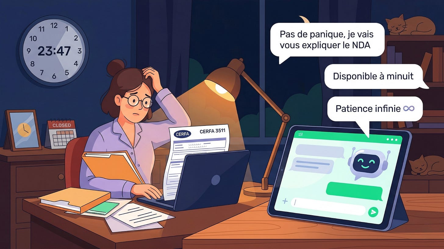 Il est 23h47. Vous venez de tomber sur le formulaire Cerfa 3511 pour la première fois. Vous ne savez pas ce que c’est, vous ne savez pas si c’est obligatoire pour vous, et vous ne savez surtout pas à qui poser la question sans avoir l’air complètement perdu.